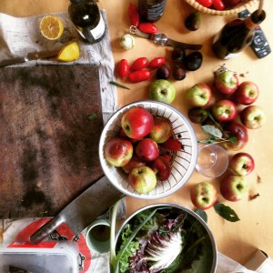 The chickens root around in the enormous orchard, thick with apples, pears and figs. The vegetable garden is filled with swathes of parsley, lettuce and greens.